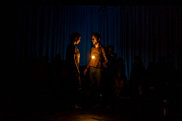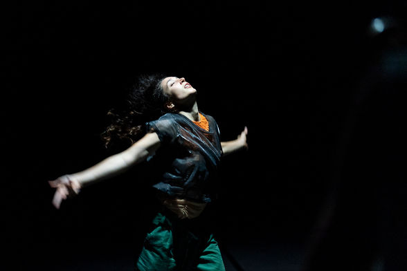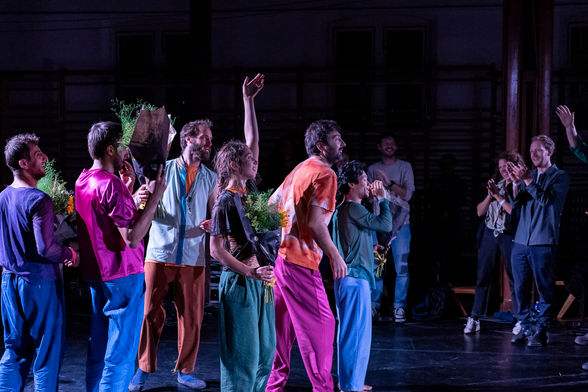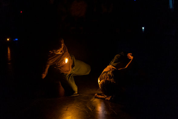The audience is invited in a circle surrounding the stage, which becomes a space where joy exists along with grief, compassion along with excitement, images along with poetry, a performance as much as a ritual of creating a small world full of hope. The piece shifts from exuberant energetic scenes to intimate moments exposing the sensitivity of each person’s bodies, all culminating towards inviting the audience to join a communal act of celebration.